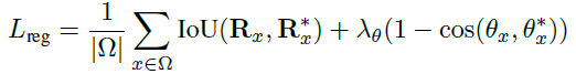 두 정보(box, rotation) 가 GT score map 의 positive 영역에 대해서만 예측이 수행되는 것과 달리,
