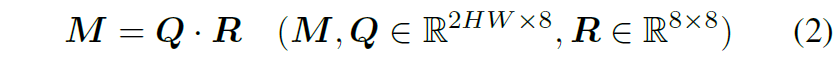 여기서 M의 각각의 컬럼들은 정규화된 호모그래피 flow를 의미합니다. QR 분해를 통해 Q의 컬럼들은 모두 직교화가 되었으며 이들은 자연스럽게 호모그래피의 subspace에 걸쳐 확장된 flow bases의 역할을 수행할 수 있게 됩니다. 이는 바꿔 말하면, 각각의 flow bases가 호모그래피 그룹의 원래의 공간에서 접선 공간에 위치해있다고 볼 수도 있습니다.