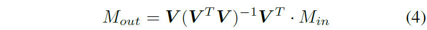 따라서 저자들은 low rank motion만 남기고자 feature bases의 subspace 안으로 M_{in} 을 다음과 같이 투영시켜버립니다.