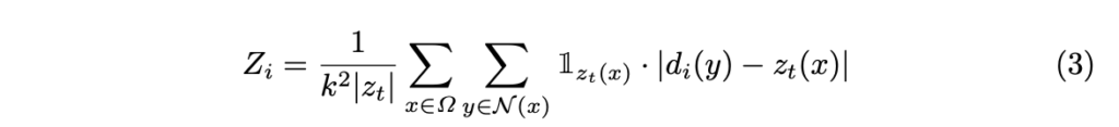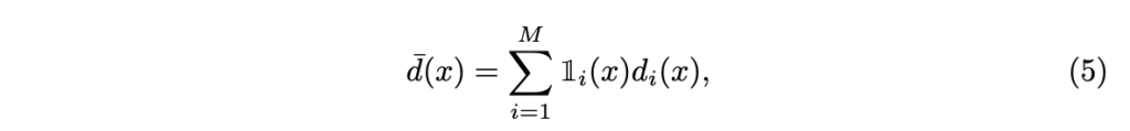 즉, d_i(x) 가 가장 낮은 photometric residual을 보일 때, \mathbb{1}_i = 1을 나타냅니다.