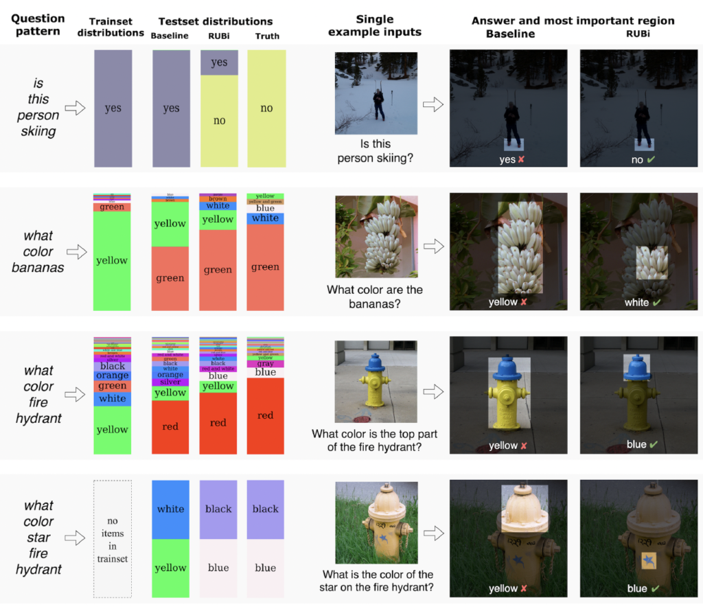 이렇게 prediction을 수정하여서 VQA 모델이 question에서 biases를 학습하는 것을 방지하는 데요. 그러면 실제로 어떻게 작동하는지 예제를 통해서 보여드리고자 합니다.