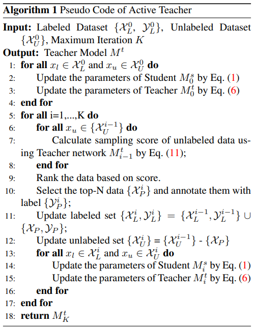 결국 정리하면 논문에서 제안하는 active teacher의 알고리즘은 아래와 같습니다.