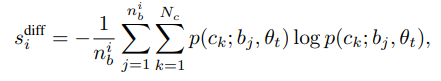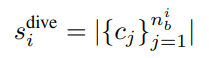 c_j는 j번째 bounding box에 대한 예측 클래스이며, n_b은 이미지i에서 예측된 bounding box 들을 의미합니다. |.| 는 집합의 크기를 의미하며, 이미지i에 포함된 class의 다양성을 측정할 수 있는 수식입니다.