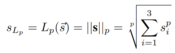 이후 세가지 스칼라 값으로 구성한 벡터 s(수식7)에 대한 normalization 값(수식8, L1 norm 이용)을 최종 데이터의 가치(S_Lp)로 이용합니다.
