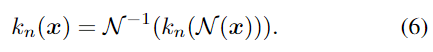 이미지 x가 주어졌을 때, 객체 영역을 잘라내고 고정된 크기인 D_{\mathcal{N}} ⨉D_{\mathcal{N}} 로 scale을 조정하여 정규화된 크기로 변환합니다. 2D keypoint는 아래의 변환 식을 따라야 합니다.(수식에 대한 의미를 풀어보자면, 정규화된 이미지로 구한 keypoint에 대하여 원본 크기로 다시 변환시켰을 때, 원본크기의 이미지로부터 구한 keypoint와 동일해야한다는 것입니다.)