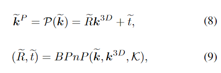 - 투영된 keypoint는 ^P, CAD 모델에서 구한 3D keypoint는 ^{3D}