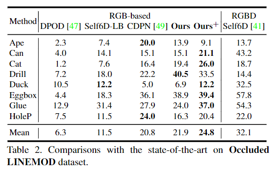 [2] Peng, Sida, et al. “Pvnet: Pixel-wise voting network for 6dof pose estimation.” CVPR (2019).