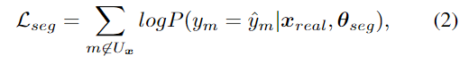 아래의 식은 pseudo-labeled real 이미지 x_{real}을 이용하여 fine-tuning을 할 때 사용하는 segmentation의 loss function으로, 아래의 식(2)으로 정의됩니다.