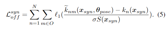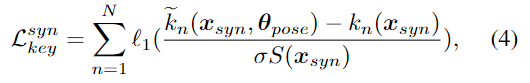 합성 데이터에 대해서는 정확한 keypoint k_n를 구할 수 있고, smooth l1을 이용하여 k_n를 학습합니다.