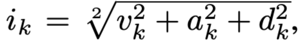 sequence가 주어지면 먼저 lexicon을 찾아 lexicon에 나온 단어를 찾습니다. 우리가 사용하는 VAD values의 범위는 -1에서 1까지 입니다. 그런 다음 각 단어의 L2-norm을 계산하여 intensity를 구합니다. 식은 아래와 같습니다.