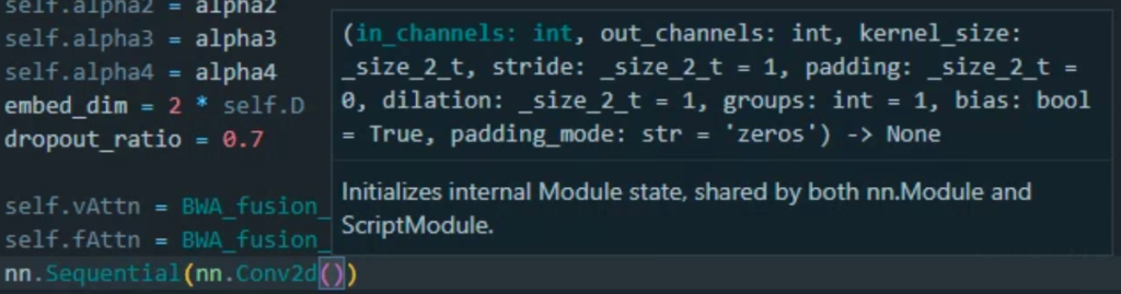 또한, class 구현 시 args를 이용해 초기화를 진행하게 되면, 클래스 선언부 코드를 보았을 때 해당 클래스가 요구하는 매개변수가 어떤 것들이며 어떤 자료형인지 등을 유추하기 위해, 해당 클래스 선언부 외에 argparser의 구현부도 살펴봐야하는 번거로움도 존재합니다.