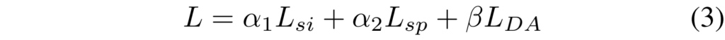각 branch의 triplet loss와 DA loss를 포함하는 전체 프레임워크의 Loss L은 아래의 [수식3]과 같습니다.