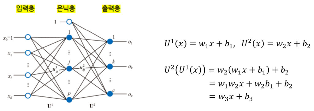 노드가 다른 노드로 연결될 때, 가중치(weight)가 곱해지고 편향(bias)이 더해지는 선형적인 affine연산이 진행됩니다. 이때 활성화 함수를 거치지 않는다면 은닉층을 많이 쌓아도 다른 weight값을 가지는 하나의 층을 거치는 것과 같은 역할을 하기 때문에 선형문제로 해결할 수 없는 문제들을 해결 할 수 없습니다. 따라서 비선형 활성화함수를 거쳐 직선으로 해결할 수 없는 문제를 해결할 수 있도록 비선형성을 더해줍니다.