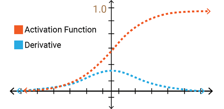 위와 같은 함수들이 비선형성을 더해주는 활성화 함수들의 예시입니다. Sigmoid함수는 0 ~ 1, tanh함수는 -1 ~ 1의 범위로 출력해주는 함수로 비선형성을 더해줍니다. 하지만, 이 두 함수의 기울기 값은 0과 1사이의 값을 갖고, 0으로 부터 멀어질수록 값이 0에 가까워지기 때문에 계층을 많이 거칠수록 여러번 연산되며 기울기가 0으로 수렴해 없어지게 됩니다. 이는 신경망의 학습을 위해 역전파를 거칠때 기울기 0으로 소실되어 가중치가 갱신되지 않는 문제가 생깁니다.