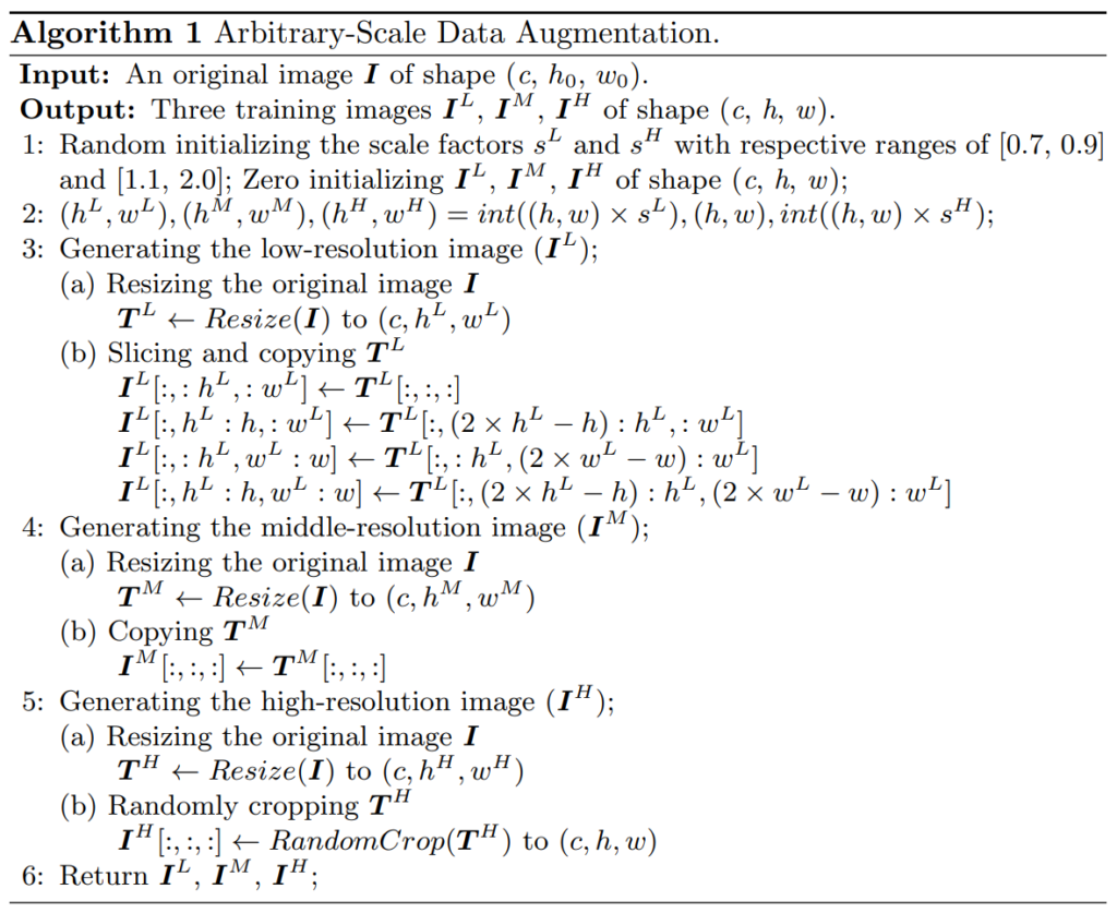 여기서 한가지 중요한 점은, I_{t}^{L}, I_{t}^{H} 은 모두 I_{t}^{M}과 동일한 해상도를 지니고 있으며, 다만 시각적으로 보이는 것이 확대되어 있는지, 축소되어있는지 그 차이일 뿐입니다. 보다 디테일한 과정은 아래 수도코드를 참고하시면 좋을 것 같습니다.
