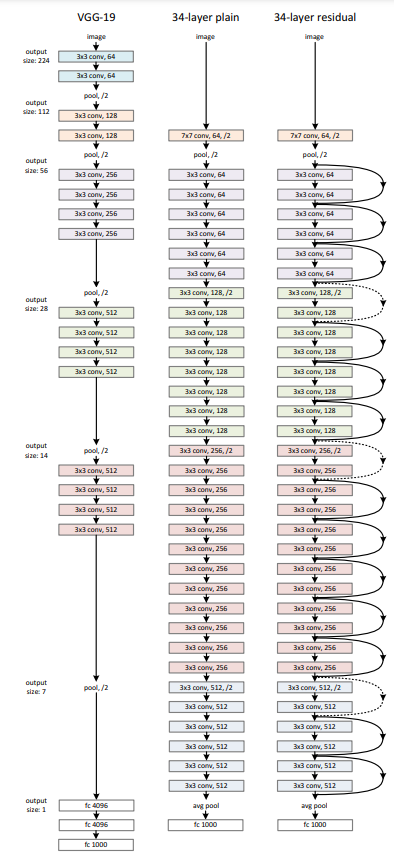 - ResNet은 연산 속도를 맞추기 위해 피쳐맵 크기를 절반으로 줄일때 채널 수를 두 배로 늘립니다.