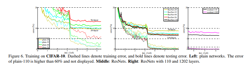 저자는 이에 그치지 않고 CIFAR-10 데이터셋에 대해 152-layer보다도 더 깊은 모델을 구성했을 때에도 잘 수렴하는지 확인하기 위한 실험을 진행합니다.