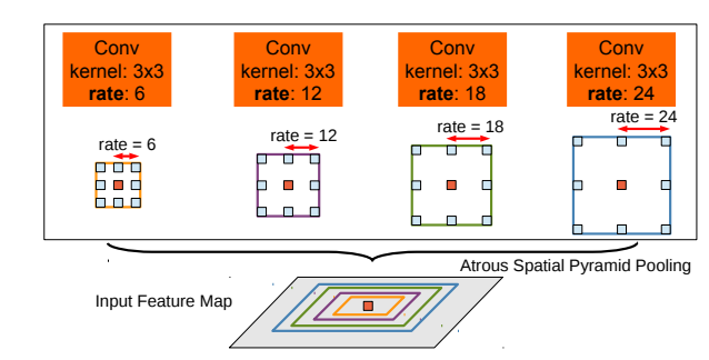 receptive field는 모델이 한번에 볼 수 있는 영역을 의미하는 것이니 잘 아실 것으로 이해하며, multi-scale learning에 대해서는 간단하게 소개드리면, 하나의 feature map에 대해 다양한 scale의 kernel size 혹은 dilated convolution 등을 사용하여 multi-scale로 연산된 feature map을 활용하는 것을 의미합니다. (그림1 참조)