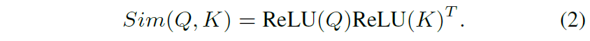 여기서 Sim function을 위와 같이 softmax를 활용하는 self-attention을 softmax attention이라고 명칭할 것입니다. 아무튼 이러한 soft attention에서 우리는 이와 유사하지만 조금 다른 Sim function을 정의할 수 있는데, 바로 ReLU activation function입니다.