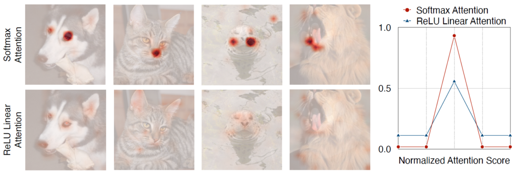 하지만 이러한 ReLU Linear Attention도 한계점이 명확하게 존재합니다. 아무래도 ReLU 기반의 attention은 non-linear하기 때문에, softmax와 달리 보다 집중된 attention map을 만들기 어려워하며 이는 곧 local information을 포착하기 어려움을 의미하다고 합니다.