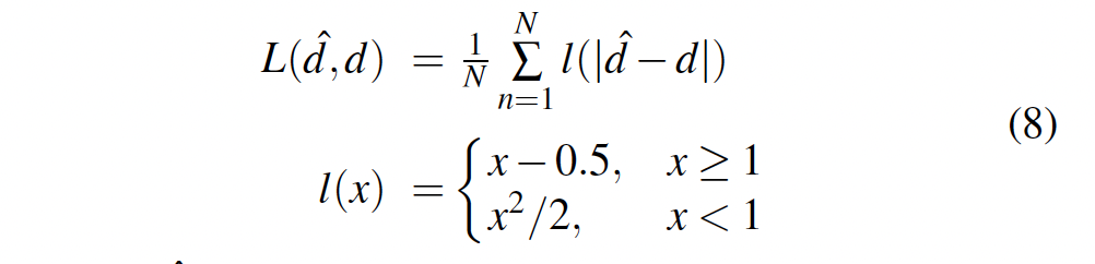 손실함수로는 smooth L1 loss를 사용하였습니다. smooth l1이 l2 loss에 비해 disparity가 갑자기 변하는 지점에서 강인하며, 노이즈와 outlier에 덜 민감하기 때문이라고 합니다.
