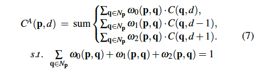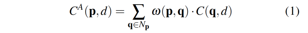 - C^A(p, d) : pixel p의 disparity d에 대한 aggregation cost