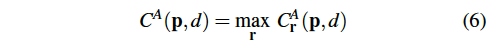 최종적인 C^A(p, d) 같은 경우는 식 6과 같이 네 방향 중에서 최대값을 선택하여 얻어집니다.