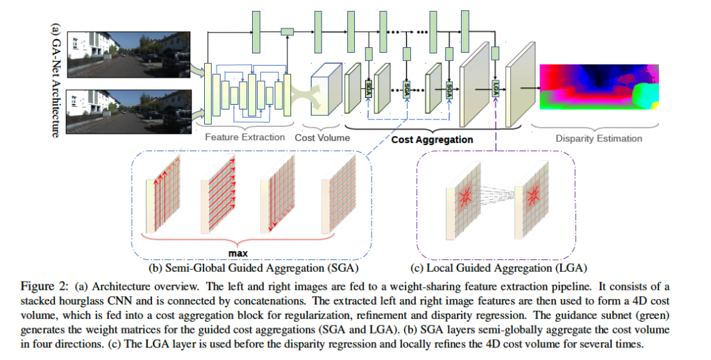 FIg 2에 보이는 것처럼 GA-Net은 4가지 파트로 구성되어 있습니다.