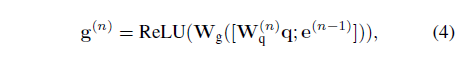 결국 총 L개의 단어를 훑으며 N번의 단계를 거치는 상황인데, 각 단계마다 guidance vector g^{(n)} \in{} \mathbb{R}^{d}이 존재합니다. 이는 아래 수식 (4)와 같습니다.