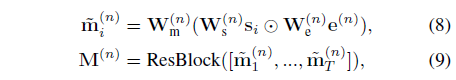 수식 (8), (9)를 통해 얻은 n번째 semantics-specific segment feature M^{(n)}\in{}\mathbb{R}^{d \times{} T}는 각 단계에서의 semantic phrase와 모든 segment간 관계가 local하게 고려된 feature라고 볼 수 있습니다.
