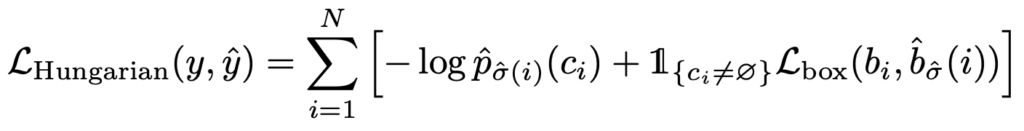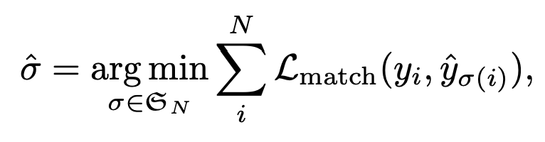 그리고 우리가 헝가리안 알고리즘 과정에서 i번째 element에 ground truth와 matching 되는 \sigma(i)번째 예측값에 대해서는 아래와 같이 표기합니다.