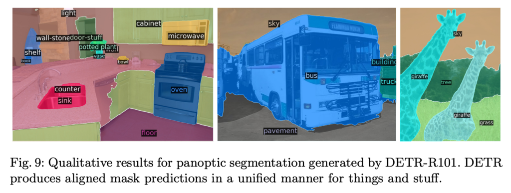 테이블을 보시면 모든 지표는 아니지만 DETR 구조가 panoptic segmentation에서도 꽤나 괜찮은 성능을 보여주고 있습니다.