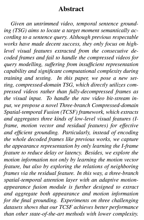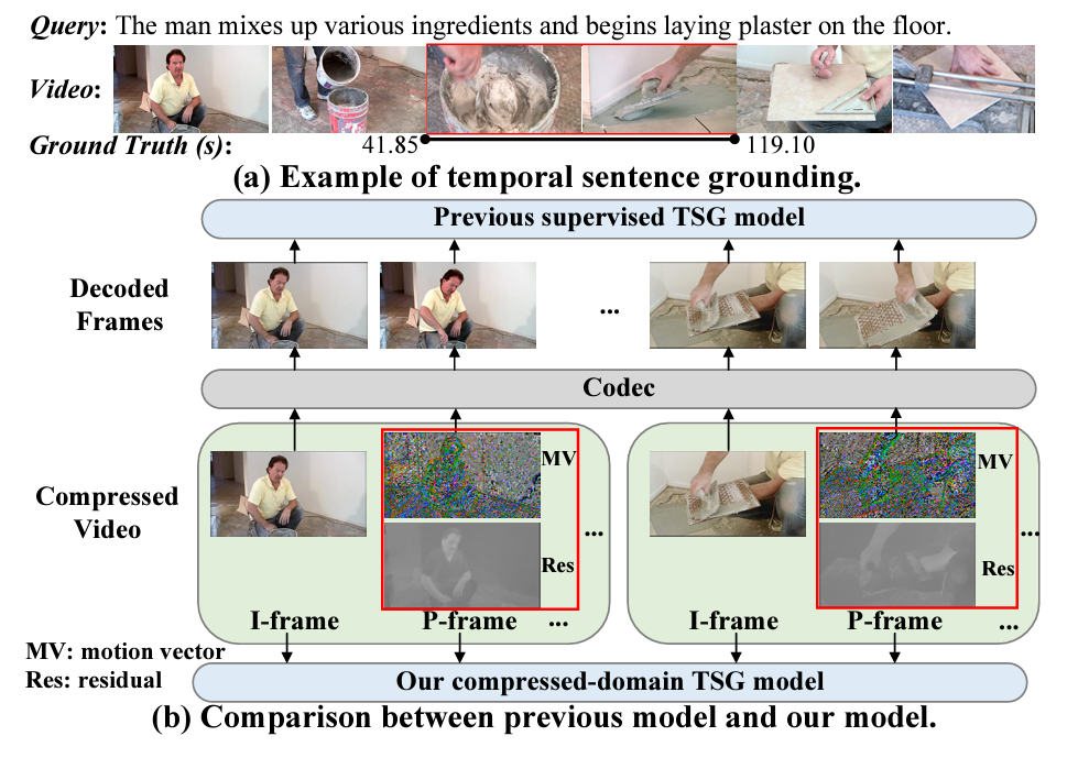 - We propose a brand-new and challenging task: compressed-domain TSG, which aims to directly leverage the compressed video for TSG.