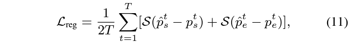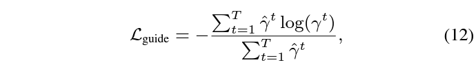 수식 11은 가지고 있는 GT 구간과의 CE Loss를 의미하고, 수식 12는 수식 10에서 뽑은 snippet-wise attention score를 guide 해주기 위한 loss로, 실제 GT 구간 내 포함되는지 여부에 따라 0 또는 1로 guide 됩니다.