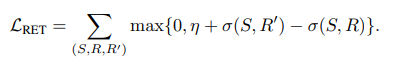 본문의 Multi-Task Loss 부분에서 질문이 있습니다.L(RET)의 수식에서 S, R , R’이 나와있던데 여기서 R’는 무엇을 의미하는 것인가요?? L(RET)의 수식이 σ(S, R’)을 포함시켰을 때 무엇을 MAX하려는 것인지 설명해주시면 감사하겠습니다!