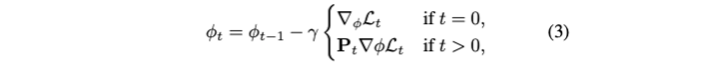 gradient modification matrix $P_t$를 얻기 위해, 논문의 저자는 Recursive Least Square algorithm을 사용하였습니다. 구체적으로 인코더의 평균 output을 다음과 같이 정의합니다.