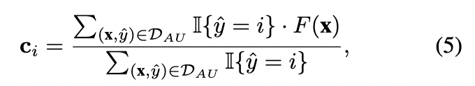 Sd를 계산하기 위해서는 DAU 샘플에 대한 정확한 카테고리 라벨들이 없기에 FINCH 클러스터링 알고리즘을 사용하여 샘플들을 클러스터링합니다. 이때 클러스터 수를 K로 고정하고 각 클러스터의 중심을 다음과 같이 계산합니다.