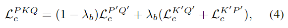 마찬가지로 3D-2D coarse-level matching에 Circle Loss를 적용하며, 이때 먼저 3D positive와 negative 샘플을 2D 평면에 투영한 뒤, 2D superpixel과 3D superpoint 사이의 positive와 negative 쌍을 얻어 Loss를 구합니다. 이때, K’와 Q’사이의 Loss는 \mathcal{L}^{K'Q'}_c, K’와 P’ 사이의 Loss는 \mathcal{L}^{K'Q'}_c로 나타내며, 전체 Bridege Coarse-level Matching Loss는 아래의 식 (4)로 정의됩니다.