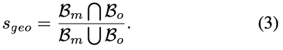 이는 물체의 shape, size와 같은 요소를 고려하여 proposal m에 대한 점수를 측정하게 되는데요. 여기서도 앞서 구한 best template \mathcal T_{best}을 사용합니다. 이때는 rotation, translation으로부터 projection 시켜 식(3)과 같이 2D bbox로부터 IoU를 계산하여 s_{geo}를 측정하였다고 합니다.
