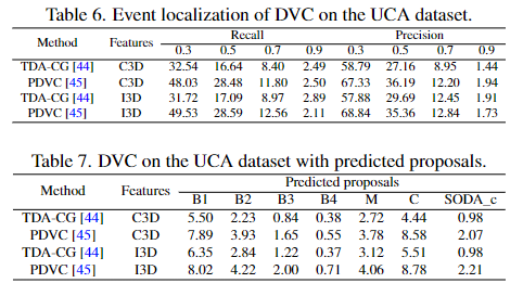 표6은 proposal의 성능을, 표7은 proposal된 구간에 대한 captioning의 성능을 보여줍니다.