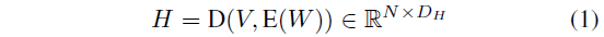 수식 (1)에서 E(\cdot{}), D(\cdot{})은 각각 Transformer의 encoder, decoder를 의미합니다. 먼저 encoder를 통해 텍스트 쿼리의 feature W에 self attention을 적용한 뒤 decoder를 통해 비디오와 E(W)의 cross attention을 적용해 fusion을 수행하는 것으로 볼 수 있겠습니다.