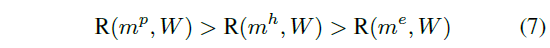 앞서 이야기한 세 가지 샘플의 관계를 생각해보았을 때 각 mask m과 텍스트 쿼리 W의 relevance R은 아래 수식 (7)과 같은 관계를 만족할 것입니다.