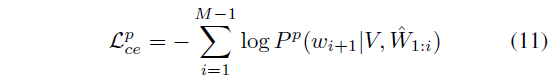 이제 H^{p}를 FC layer에 태워 예측한 단어와 실제 단어 간 CE Loss로 분류 학습을 진행하게 됩니다.