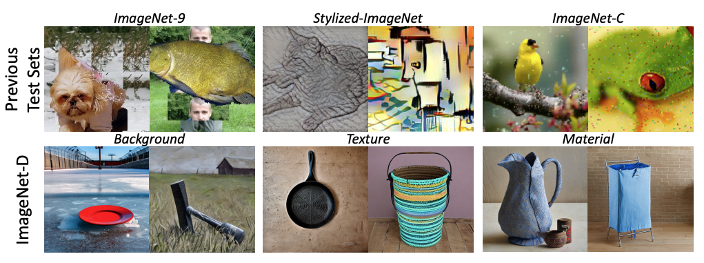 (그런데 저는 개인적으로 ImageNet-D 이미지들을 보고 있으면… 뭐랄까 형용하기 어려운, 생성 모델이 만들어낸 이미지 특유의 느낌이 들긴 합니다..ㅋㅋ)