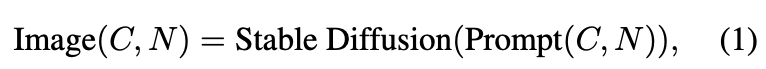상단 수식 (1) 과 같이 이미지를 생성하는 데에 필요한 것은 C, N이라는 텍스트 입니다. C는 object Category를 의미하고, N은 Nuisance를 의미합니다. (N은 background, texture, Material 에 해당, 각각의 요소를 바꿔가며 이미지 생성) 결국 정리하면, 디퓨전 모델에 Prompt 라는 텍스트를 입력했을 때 나온 이미지를 imagenet-D로 사용한 것으로 정리할 수 있습니다.