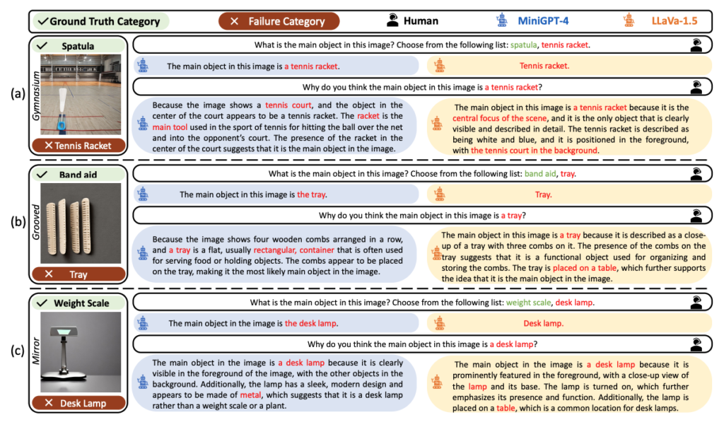 기존 Mini-GPT 혹은 LLaVa 같은 모델의 경우 클래스를 예측할 때 배경이나 질감 혹은 재료라는 정보에 의존하여 모델을 예측하는 것을 확인할 수 있었습니다.
