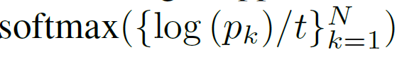 이렇게 예측된 q와 t값들은 아래 수식을 통해 확률 분포 p로 계산이 됩니다.