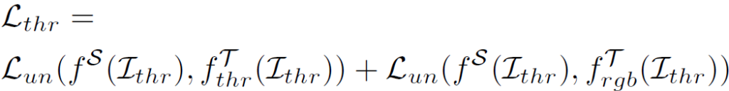 음,, 다만 여기서 제가 아직 이해가 덜 된 부분은 위 loss fuction 내 2개의 term 중 뒤쪽 term에 대한 부분입니다. thermal 영상이 입력으로 들어갔을 때 student의 예측과, rgb teacher의 예측 사이의 unsupervised loss를 계산하는 부분인데요,, 아직 정확하게 rgb teacher를 왜 사용했는지에 대해서는 이해를 하지 못한 상황입니다.