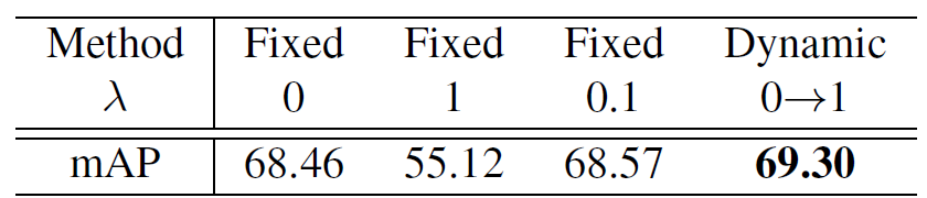 다만 학습이 진행되면서 \lambda 값을 0->1로 향상시키니 69.30, 기존 대비 약 1의 성능향상이 있었다고 합니다. 이는 학습이 진행되면서 RGB-Thermal 사이의 domain gap을 점차적으로 완화했기 때문이라고 합니다.