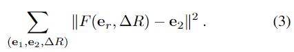 1. 해당 식에서 e_r이 e_1에 대응되는 것으로 보입니다. (논문에서 e_1에 대해 the embedding for a view of a training object로, e_2에 대해 the embedding for the view of the same object after pose change ΔR라고 표현합니다.)